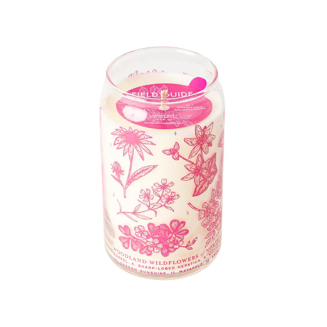 These Forest Floor candles celebrate all the beautiful things that inhabit the understory of the forest canopy. Inspired by richly colored and intricately illustrated field guides, these candles are hand-poured into 16oz glass containers screen printed with brightly colored mini field guides, meant to be repurposed as drinking glasses once the candle is done.