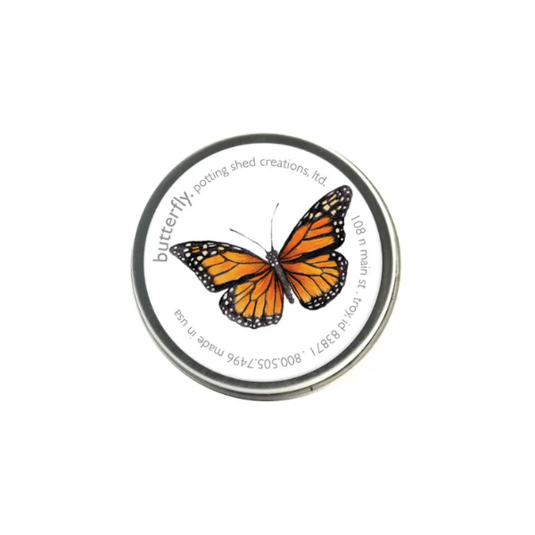 Butterfly A wonderful mix of nineteen varieties of flowers noted for their beauty and ability to attract butterflies. In cool climates, plant in spring, early summer or late fall. Includes: 19 varieties of seed, reusable recycled US steel tin, directions. Tin 2" diam.