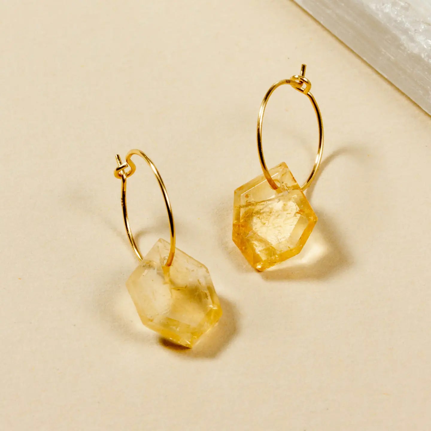 14k Gold plated Sterling silver, genuine stone mini hoop earrings.