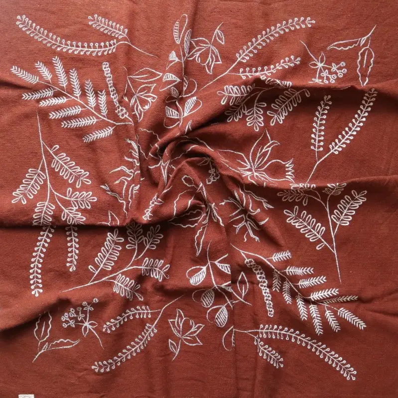 Eco-raw combines plant-based dyes with nature inspired designs. Naturally dyed raw silk scarves are great for any season or outfit.