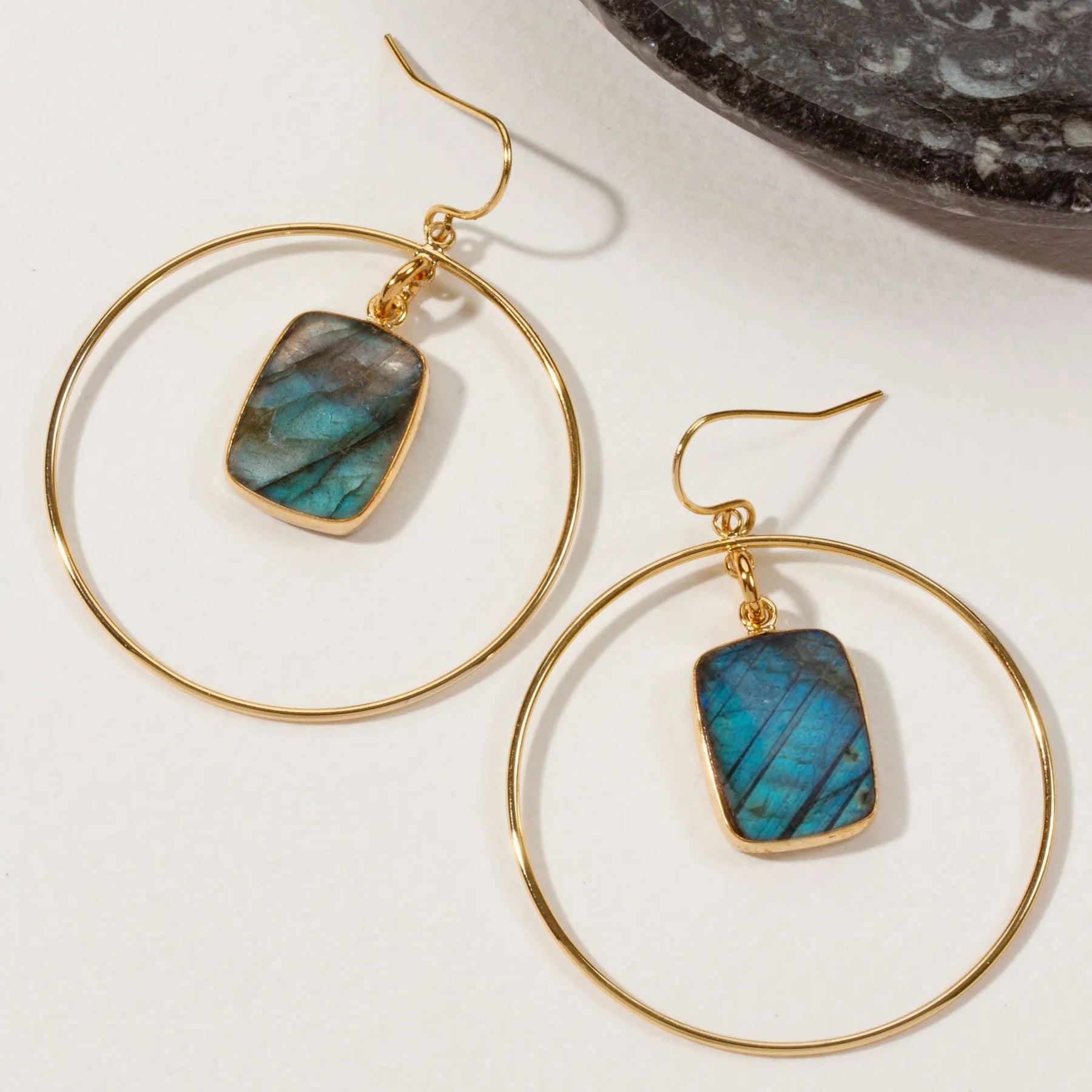 Earring length: approx. 2″ Hoop diameter: 1.6″ Boxed